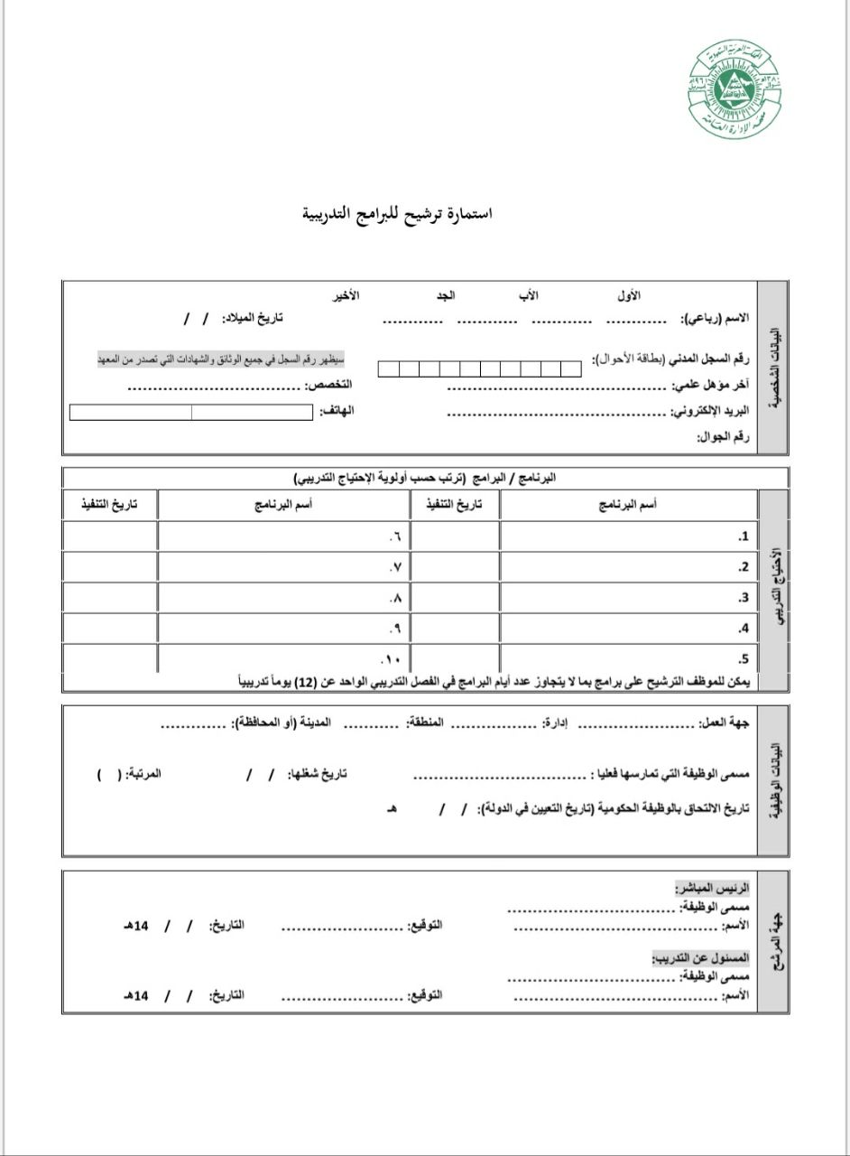 استمارة ترشيح للبرامج التدريبية في معهد الادارة مدونة المناهج السعودية