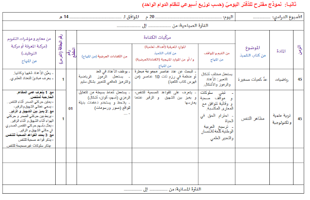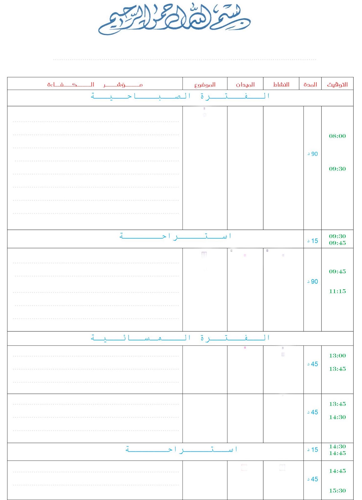 دفتر التحضير اليومي بصيغة وورد جاهز للطباعة
