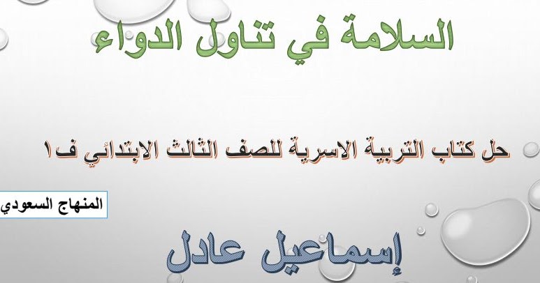درس السلامة في تناول الدواء للصف الثالث الابتدائي بستان السعودية