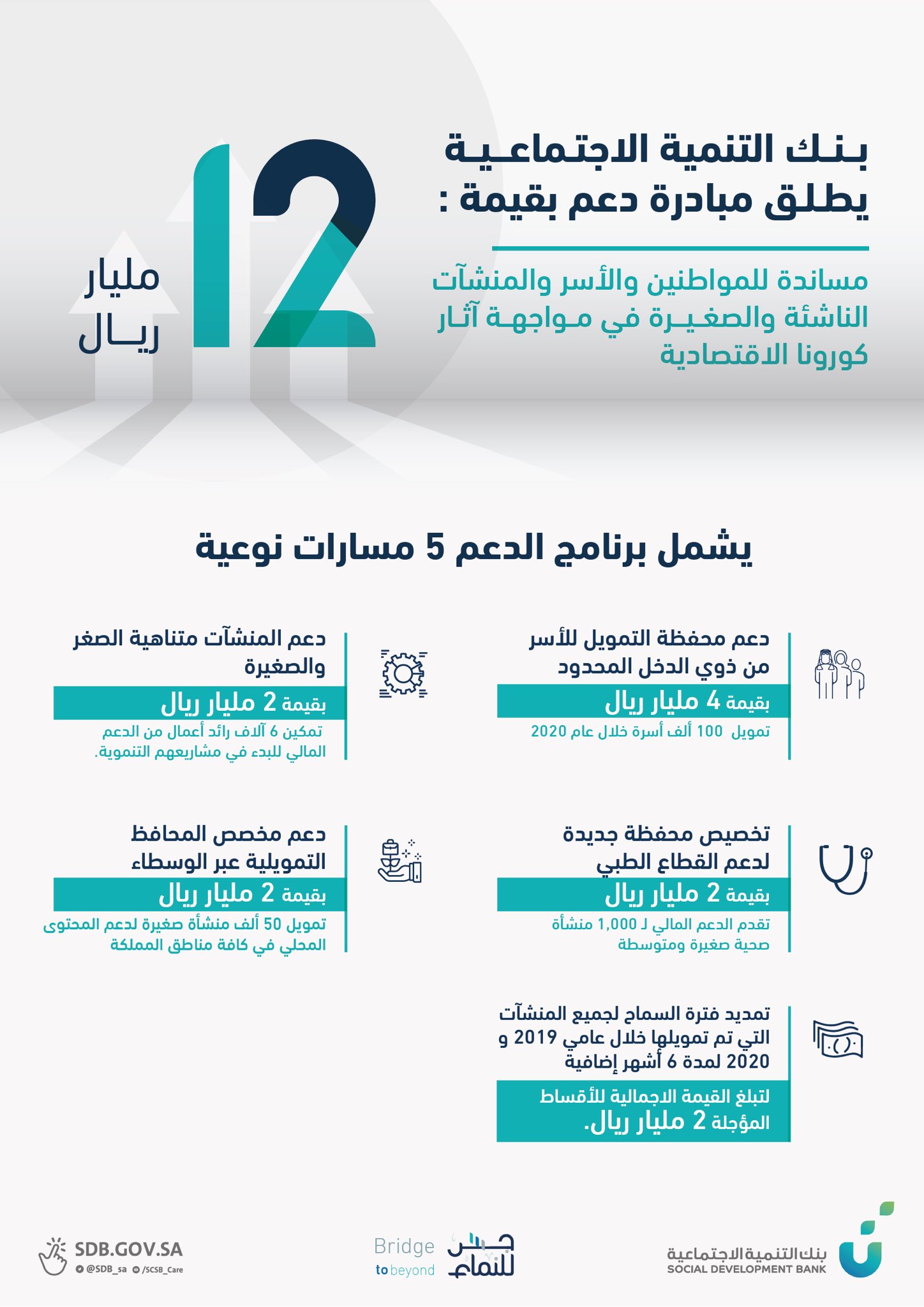 بنك التنمية الاجتماعي ة On Twitter دعم ا للمواطنين والأسر والمنشآت الناشئة والصغيرة الجديدة والقائمة في مواجهة آثار كورونا الاقتصادية بنك التنمية الاجتماعي ة يعتمد برنامج دعم بقيمة 12 مليار ريال يشمل 5 مسارات نوعي ة جسر ا للنماء