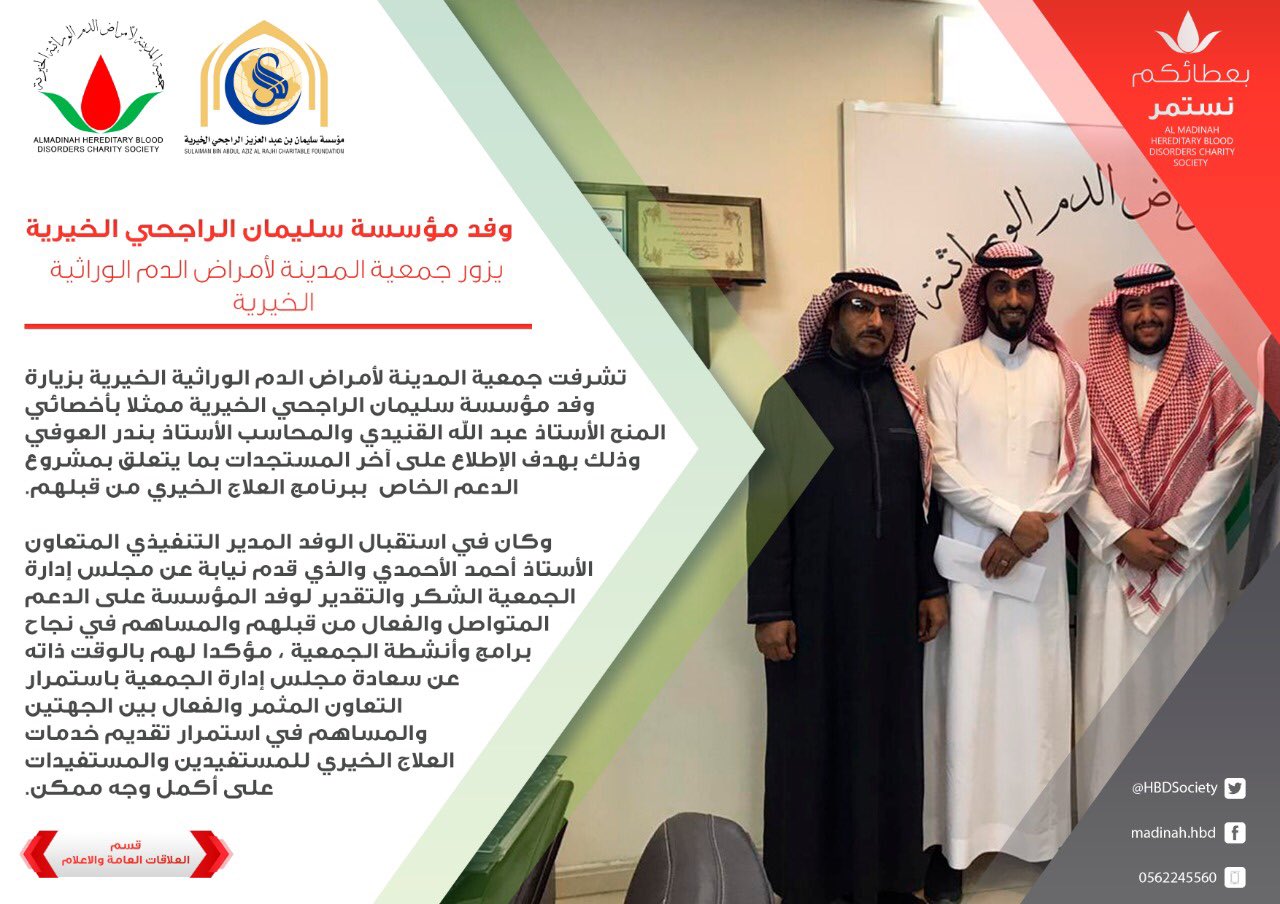 جمعية المدينة لأمراض الدم الوراثية الخيرية On Twitter وفد مؤسسة Rajhicf في المدينه المنوره يزور جمعية Hbdsociety بهدف الإطلاع على آخر مستجدات برنامج العلاج الخيري