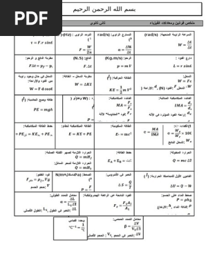 ملخص قوانين فيزياء ثاني ثانوي Pdf