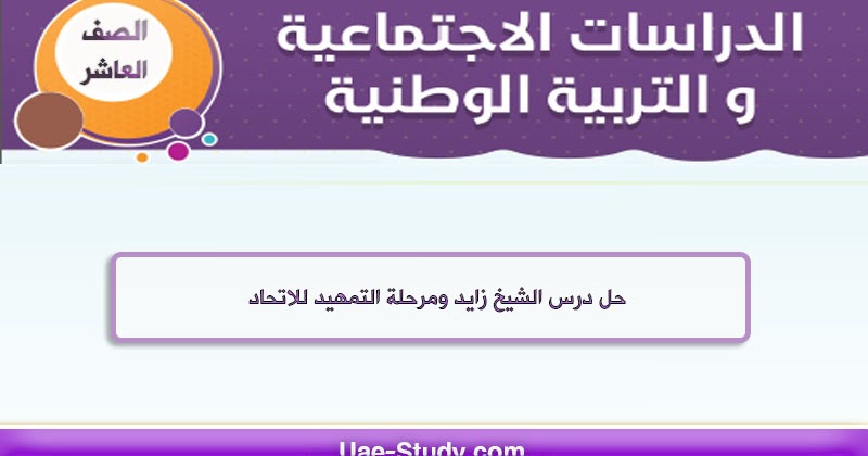 حل درس الشيخ زايد ومرحلة التمهيد للاتحاد اجتماعيات الصف العاشر