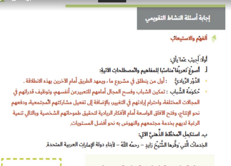 حل درس زايد وحلم الشباب دراسات اجتماعية صف ثامن فصل ثاني مدرستي الامارتية