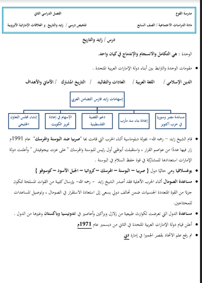 ملخص درسي زايد والتاريخ العلاقات الإماراتية والأوروبية للصف السابع الفصل الثالث 2018
