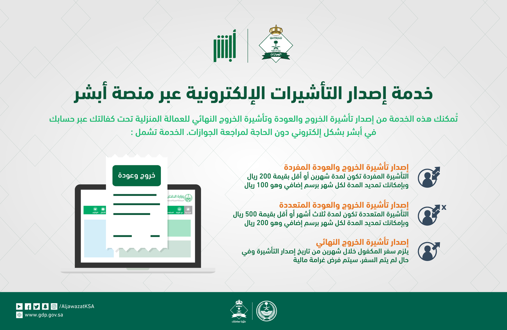 الجوازات السعودية On Twitter وفر وقتك وأصدر تأشيرات الخروج والعودة إلكتروني ا خلال دقائق عبر منصة أبشر الجوازات في خدمتكم