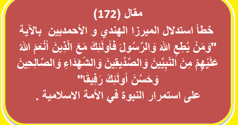Ibrahim Badawy مقال 172 خطأ استدلال الميرزا الهندي و الأحمديين بالآية و م ن ي ط ع الل ه و الر س ول ف أ ول ئ ك م ع ال ذ ين أ ن ع م الل ه ع ل ي ه م م ن الن ب ي ين