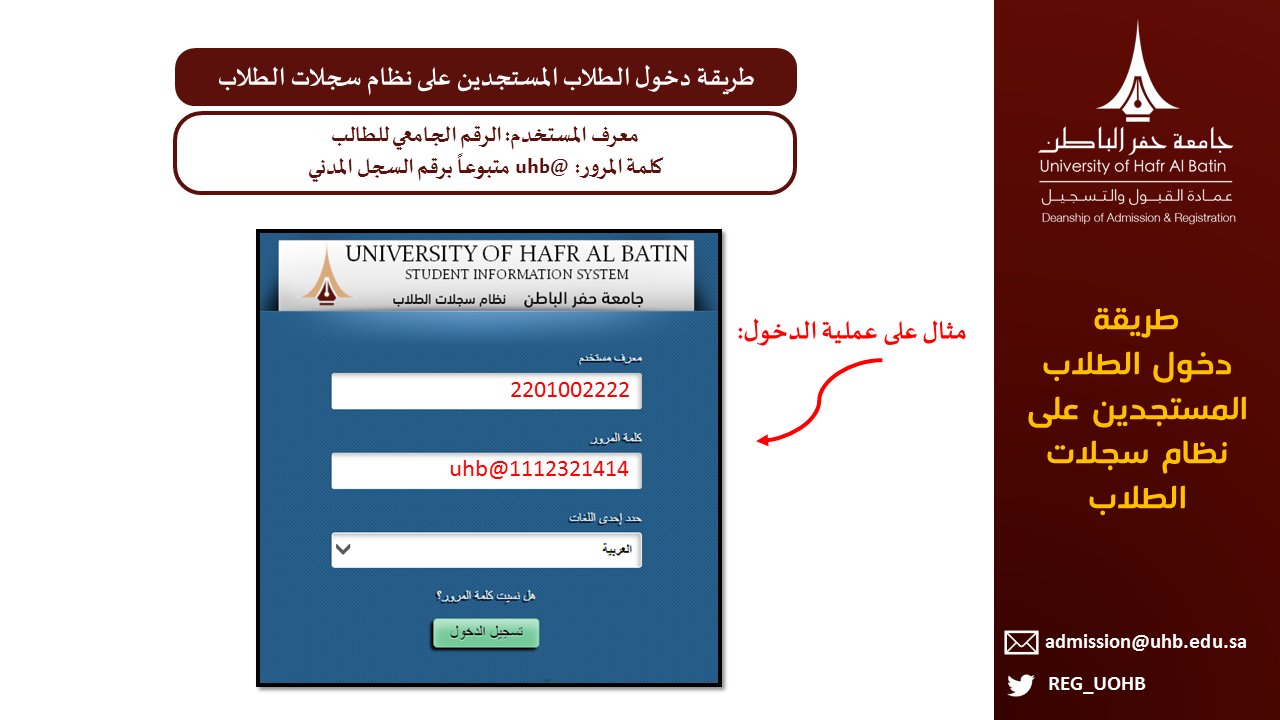 عمادة القبول والتسجيل On Twitter طريقة دخول الطلاب المستجدين على نظام سجلات الطلاب جامعة حفر الباطن