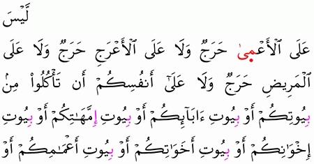 النور ٦١ ليس على الأعمى حرج Holy Quran Quran Math