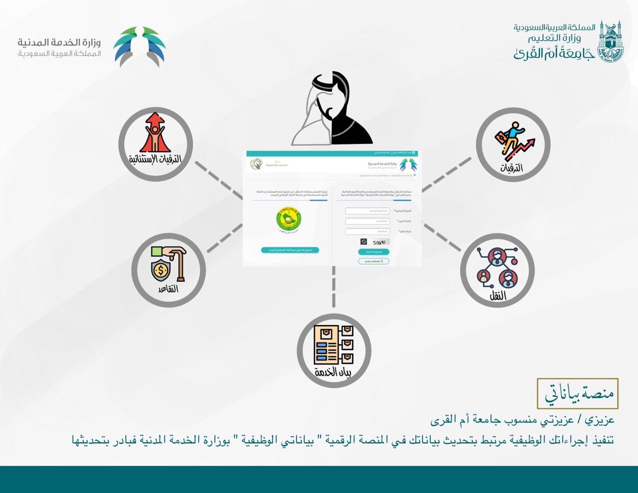 عمادة شؤون أعضاء هيئة التدريس والموظفين A Twitter عزيزي عزيزتي منسوب جامعة أم القرى تنفيذ إجراءاتك الوظيفية مرتبط بتحديث بياناتك في المنصة الرقمية بياناتي الوظيفية بوزارة الخدمة المدنية فبادر بتحديثها
