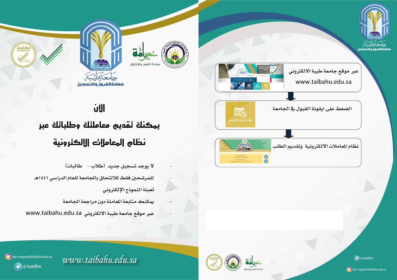 جامعة طيبة عمادة القبول بجامعة طيبة تستقبل المعاملات الكترونيا