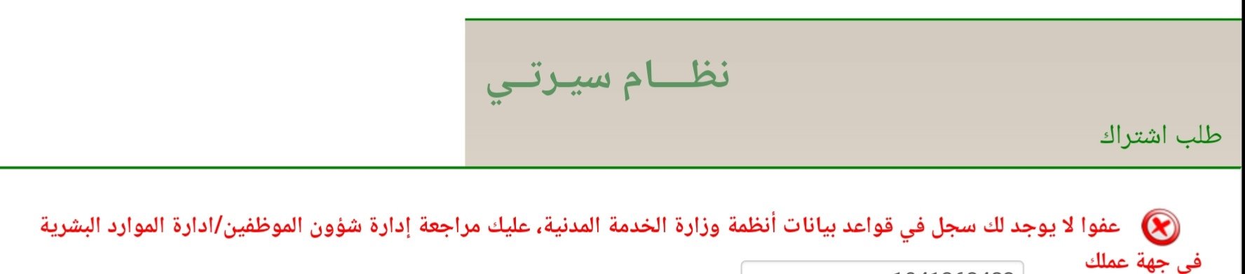 محمد أحمد الألمعي Twitterren عند التسجيل في نظام سيرتي إذا ظهرت لك رسالة كما في الصورة الموضحة أدناه فهذا دليل على عدم تسجيل بياناتك الوظيفية لدى الخدمة المدنية Https T Co Yruy7bgdoz