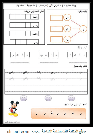 ورق عمل لغة عربية من الدرس الأول حتى الخامس للصف الأول الفصل الأول المكتبة الفلسطينية الشاملة