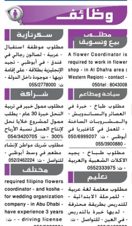 وظائف شاغرة من جريدة دليل الاتحاد الاماراتية اليوم20 سبتمبر 2017