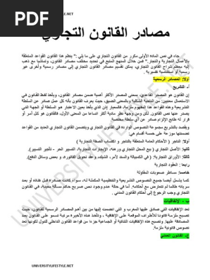 Pdf مصادر القانون التجاري ملخصات القانون التجاري Universitylifestyle