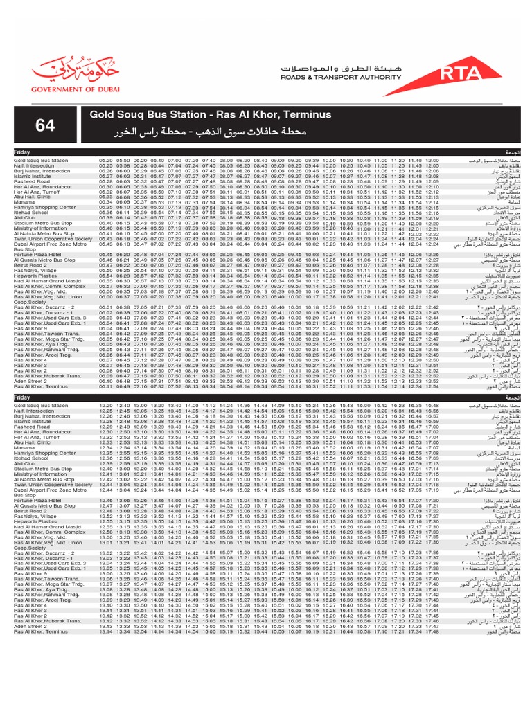 64 Gold Souq Bus Station To Ras Al Khor Industrial Area Dubai Bus Service Timetable Dubai Bus Transport