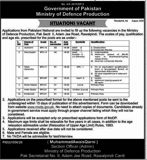 Ministry Of Defence Production Modp Jobs 2020 Download Application Form Findpakjobs Com