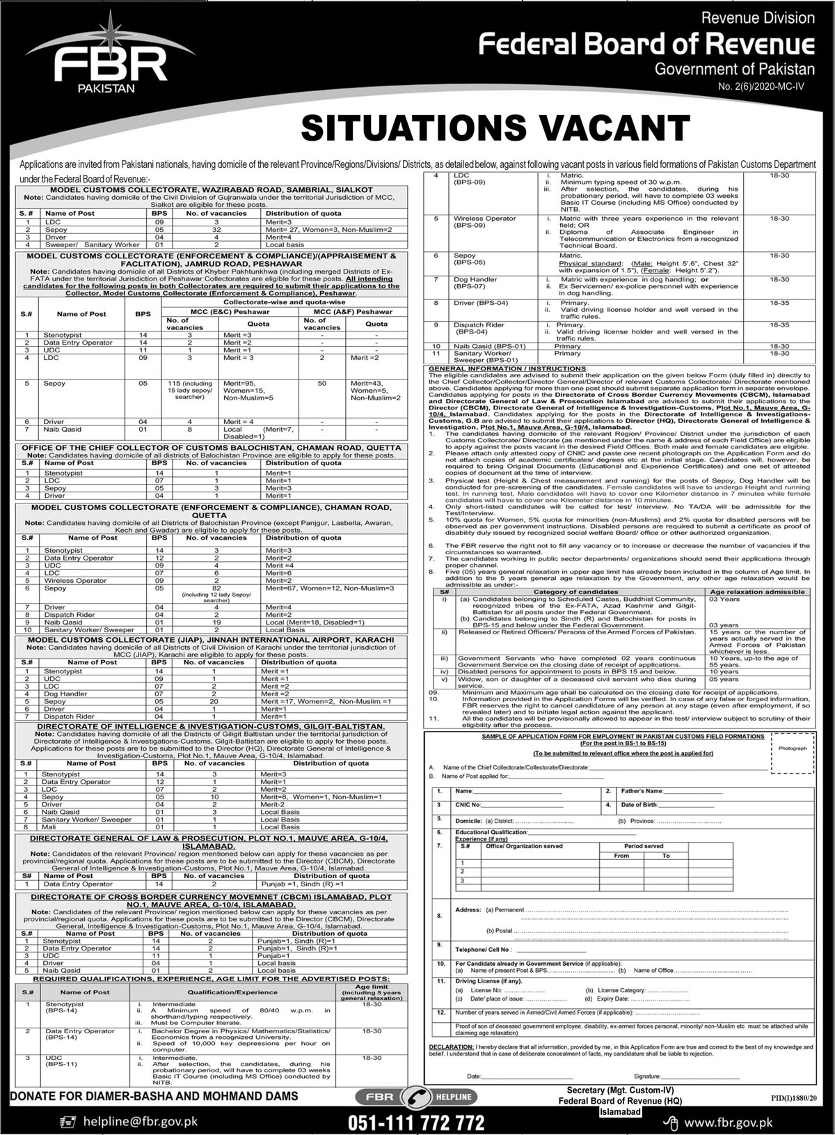 Fbr Jobs 2020 Application Form Download Sepoy Naib Qasid 386 Post Findpakjobs Com
